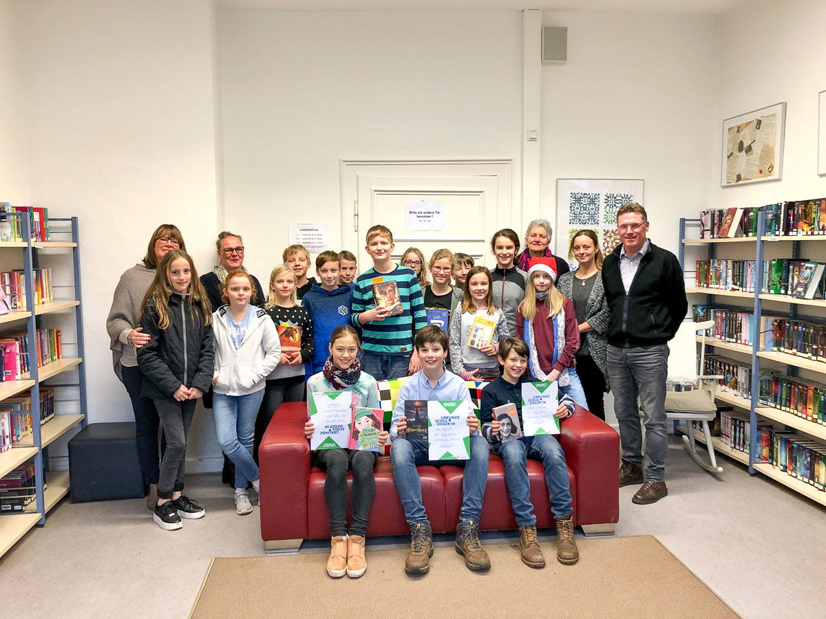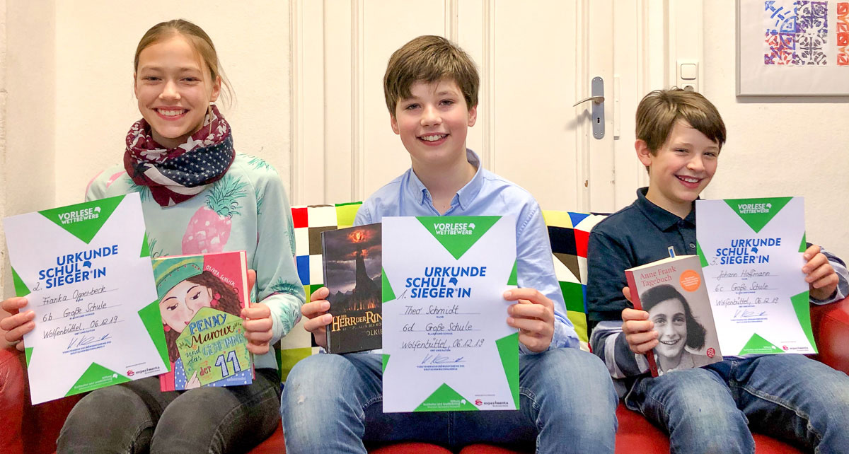 Die Schülerinnen und Schüler der 6. Jahrgangsstufe der Großen Schule holten ihre Lieblingsbücher hervor, übten fleißig und lasen sich gegenseitig um die Wette vor, um optimal vorbereitet zu sein auf den 61. Vorlesewettbewerb des Deutschen Buchhandels. Wer wirklich klar und deutlich vorliest, wer richtig betont und es schafft, mit seinem Vortrag die Fantasie der Zuhörerinnen und Zuhörer zu erwecken, hat eine Chance auf den Schulsieg. Die Schulsiegerinnen und -sieger der beteiligten Schulen qualifizieren sich für den Stadt- bzw. Kreisentscheid.