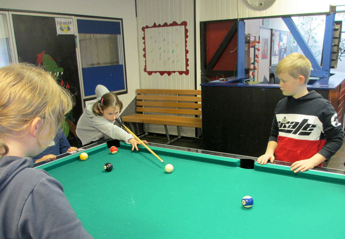 In den Pausen durften die Kinder einige Angebote des Jugendfreizeitzentrums nutzen, zu denen unter anderem ein Kicker- und ein Billardtisch, ein Flipperautomat, ein Fitnessraum, ein Kinderraum mit Kletter-, Spiel- und Bastelmöglichkeiten, ein Jugendraum mit Sofaecken und Spielekonsolen, ein Lesebereich, eine Tischtennisplatte und eine Tanzfläche im großen Saal gehören. Es wird auch an fast allen Freitagen eine Disco angeboten und an den Dienstagen finden wechselnde Bastelprojekte statt. Nachmittags können auch zu günstigen Preisen kleinere Speisen und Getränke erworben werden.