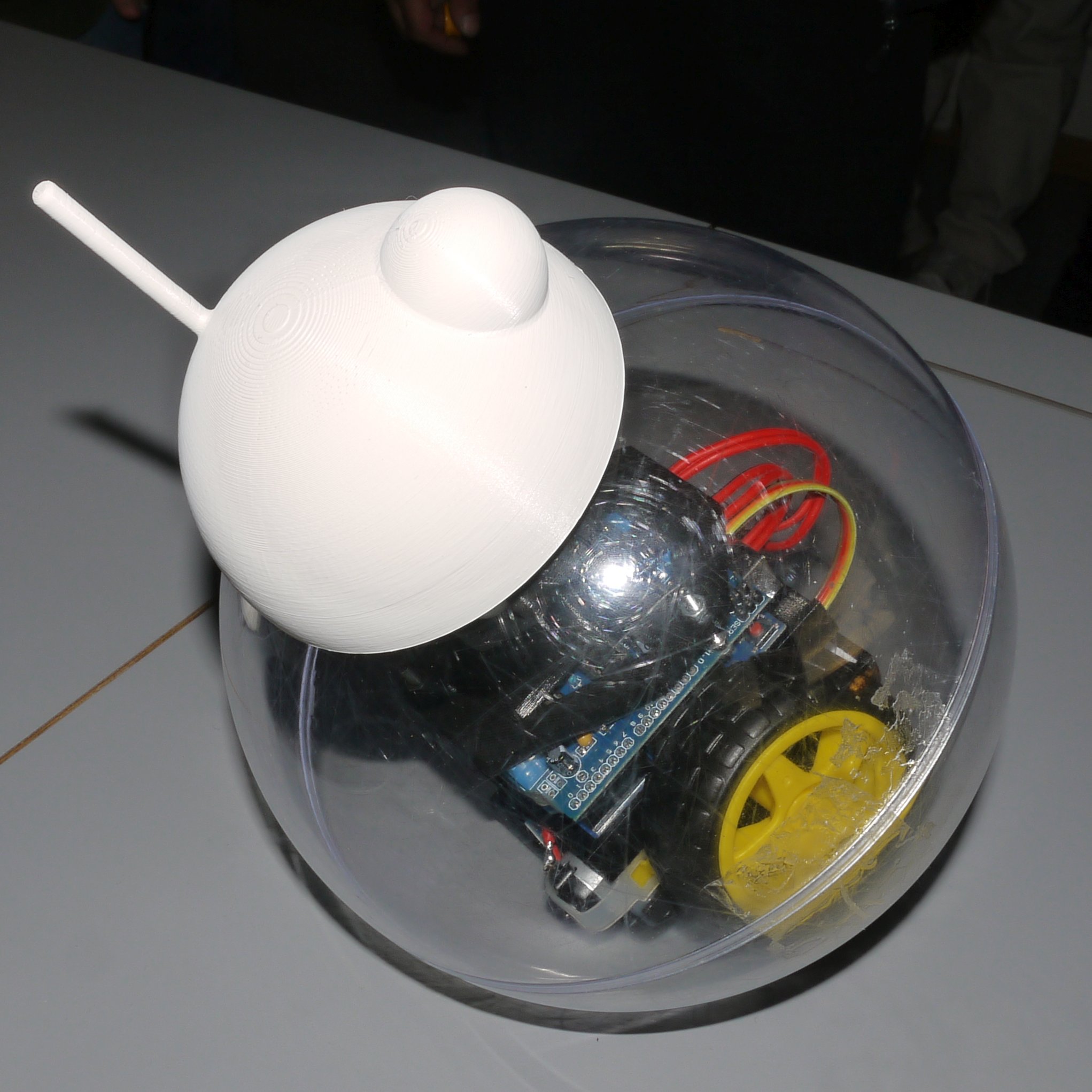 Welche Mechanik steckt hinter dem BB8? Sie beschäftigten sich mit 3D Druck, löteten die Steuerplatine und programmierten den Arduino um den kleinen Roboter zum Rollen zu bringen. Sven Bohnstedt vom Gymnasium im Schloß vermittelte zu Beginn das nötige Grundlagenwissen begleitete die Gruppe zu ihren Terminen bei den Partnern. Auch für die Projektpartner war das Thema eine Herausforderung, durch allgegenwärtige Lieferprobleme musste das ein oder andere Teil neu gedacht werden. So kamen nicht nur die Teilnehmenden ins Schwitzen.