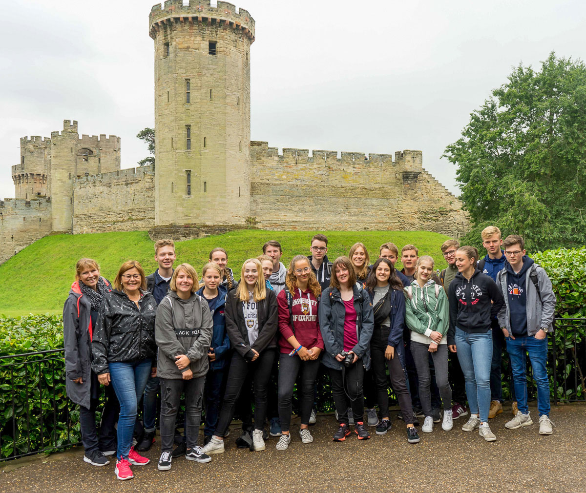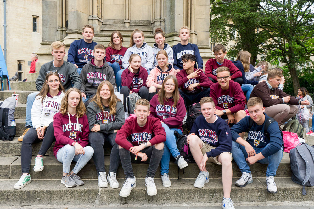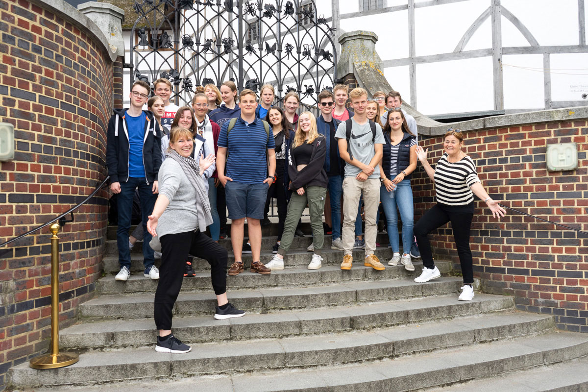 Vom 16. bis zum 22. Juni reisten die Schülerinnen und Schüler zusammen mit vier Begleiterinnen nach England. Bereits ein halbes Jahr lang hatten sie sich in einer Arbeitsgemeinschaft auf die Klassenfahrt sowohl geschichtlich als auch kulturell zusammen mit ihren Lehrerinnen auf die Reise vorbereitet. Untergebracht war die Gruppe in Gastfamilien in Oxford, von denen sie sehr herzlich aufgenommen wurden. Von Oxford aus wurden Tagesausflüge nach Bath, Stratford-upon Avon, Warwick Castle und zweimal nach London unternommen. Auch an einem Workshop in Shakespeare’s Globe Theatre nahmen die beiden Klassen teil und hatten dabei viel Spaß.