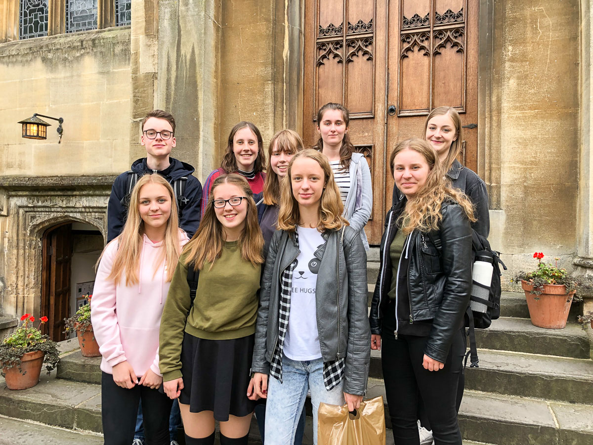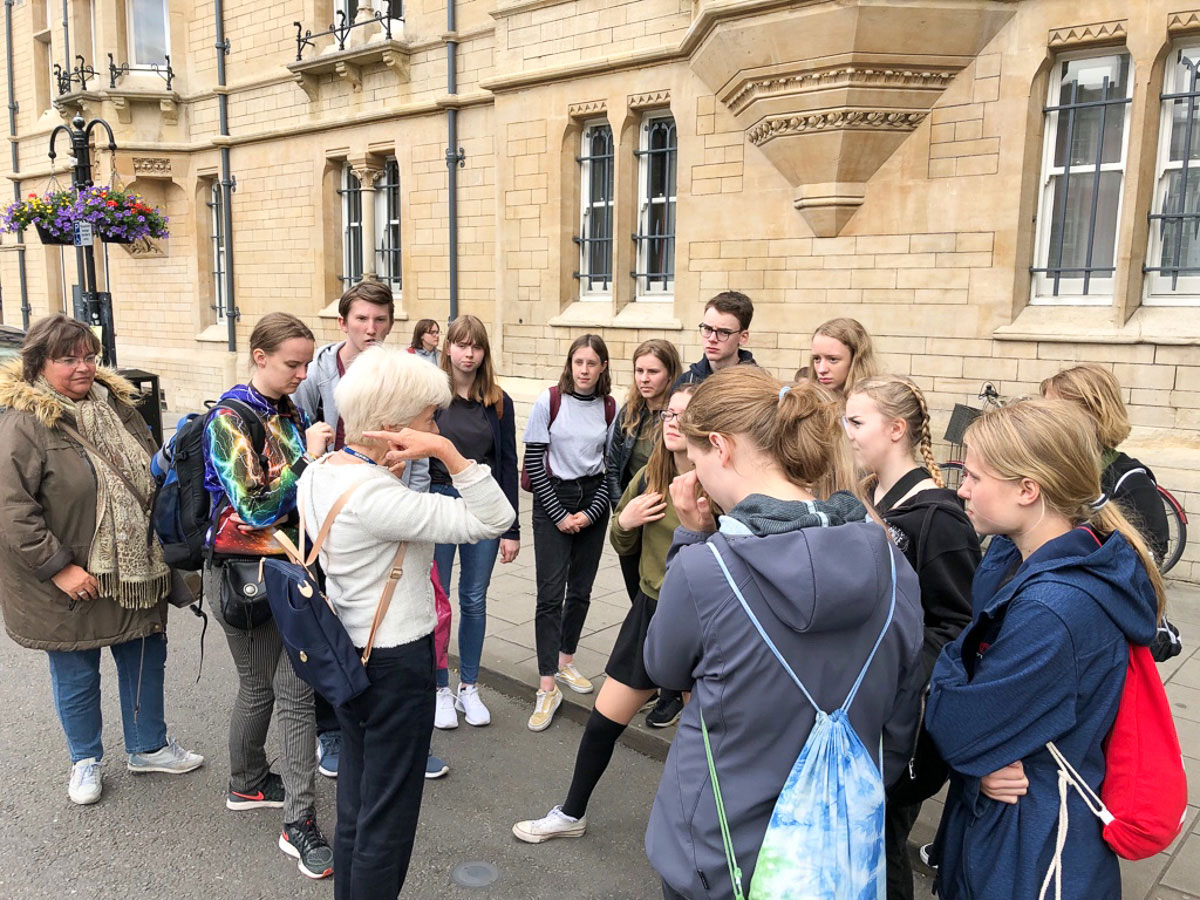 Besondere Einblicke erhielten die beiden Klassen auch durch Julia Heinemann, einer ehemaligen Schülerin aus Wolfenbüttel, die gerade in Oxford studiert und interessierten Schülerinnen und Schüler das Exeter College zeigte. Das Exeter College ist das viertälteste College der Universität und wurde bereits 1314 gegründet. Von der Studentin erfuhren die Schülerinnen und Schüler Dinge, die man sonst nicht erfahren würde, z. B. von Alpaka-Partys, die dazu dienen, gestresste Studentinnen und Studenten zu beruhigen.
