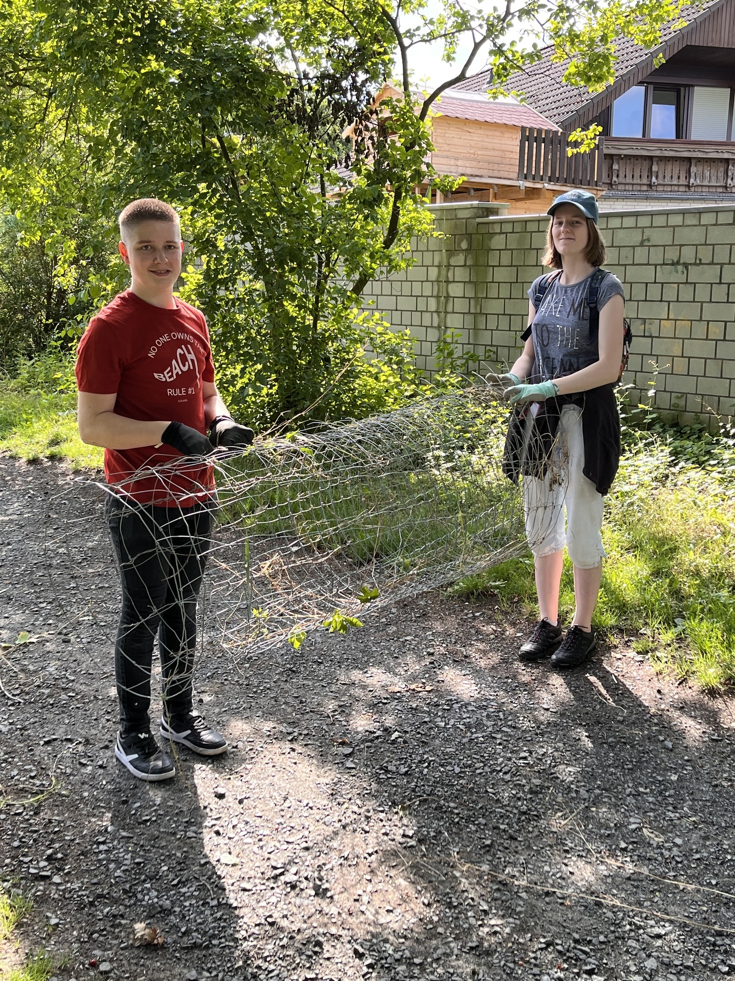 Kurz vor den Sommerferien war für einige Schülerinnen und Schüler Muskelarbeit angesagt – der Zaun um unseren Schulwald sollte abgebaut werden.